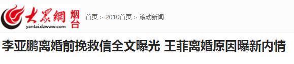 大众网:李亚鹏离婚前挽救信全文曝光王菲离婚原因曝新内情
